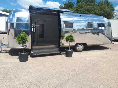 Imported, polished, converted to 230 volt electrics, UK specification running lights, UK gas safety certificate and axle. Addition of a new 'C' rail and traditional awning. Now a well known trailer which can be seen at many rallies.