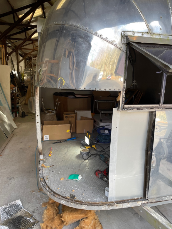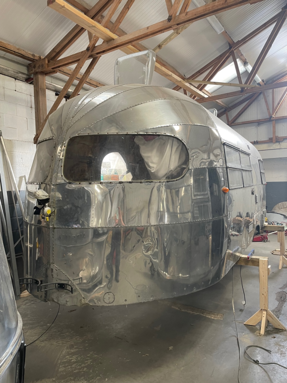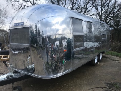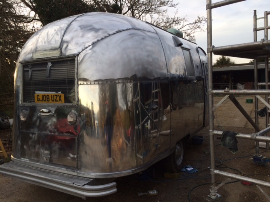 Another 60's Caravel being polished, gutted with new floor, catering hatch, UK running lights and tow hitch for a well known food brand.
