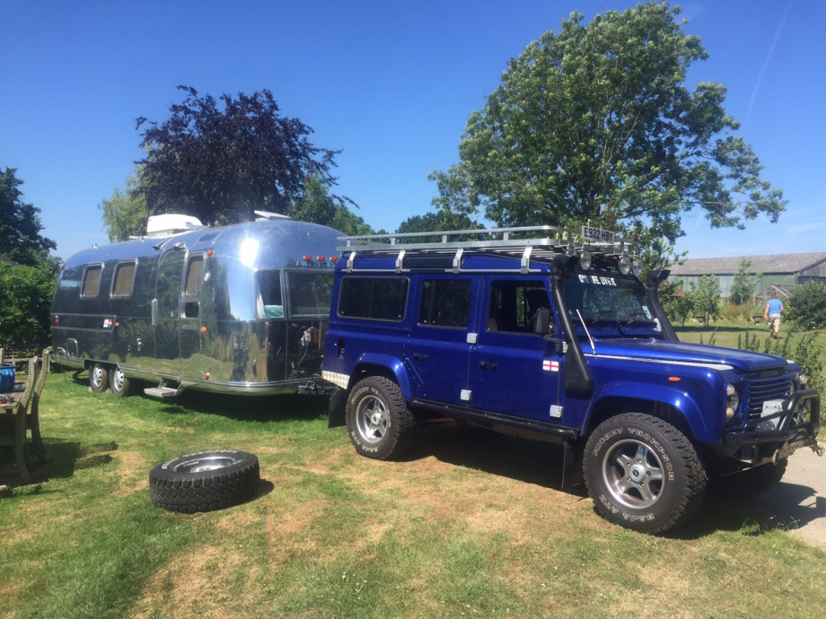 Imported then polished, converted to twin UK axles, 230 volt conversion and added a 'C' rail with a vintage awning. A bespoke 'A' frame was constructed to accomodate the large spare wheel on the rear of the Defender along with twin gas tanks. This can be seen at many of the vintage rallies and is known as Betsy. She has a completely functional original interior.